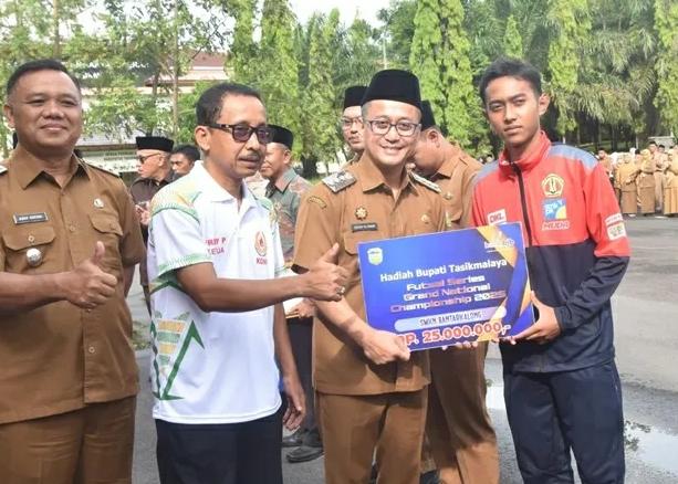 Sebagai bentuk dukungan terhadap pelajar berprestasi di bidang pendidikan dan olahraga, Pemerintah Daerah Kabupaten Tasikmalaya memberikan bantuan pembiayaan (hadiah) sebesar Rp. 25 juta kepada SMKN 1 Bantarkalong yang berhasil meraih Juara 1 Nasional Lomba Futsal Series Grand Nasional Championship Tahun 2025 di Indonesia Arena, Senayan, Jakarta, pada 1 November lalu.
