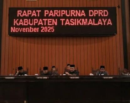 Penetapan tiga Ranperda dan Prompemperda Kabupaten Tasikmalaya tersebut diputuskan melalui rapat paripurna yang dipimpin oleh Wakil Ketua DPRD Kabupaten Tasikmalaya H. Aef Syaripudin, S.H., M.H, di Ruang Rapat Paripurna DPRD Kabupaten Tasikmalaya, Kamis (27/11/2025).