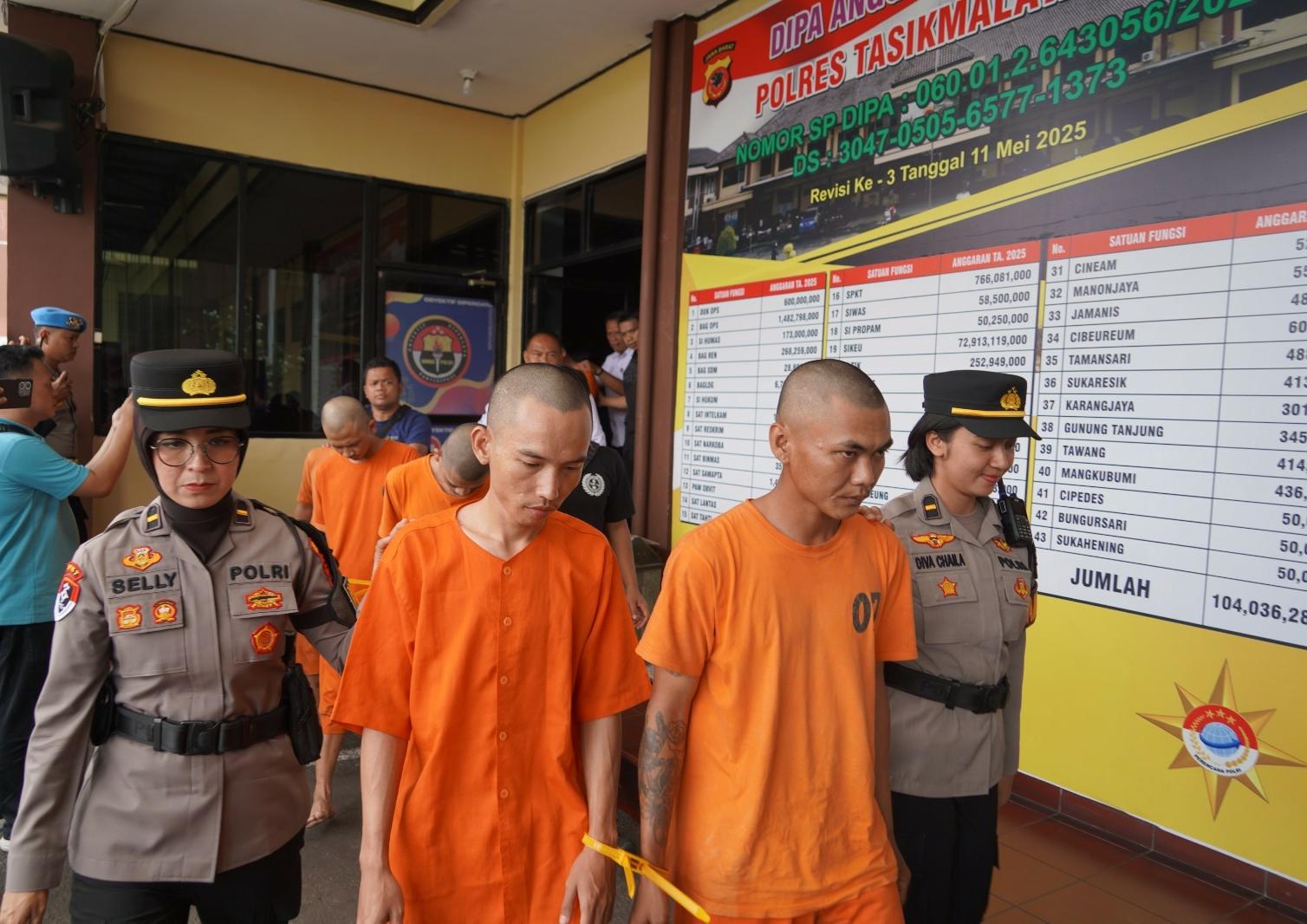 Polisi berhasil mengamankan tiga tersangka yang diketahui sebagai anggota kelompok geng motor Parpolin dan semuanya warga Kelurahan Mulyasari, yaitu CG (24) serta CS (33), dan AN (34) merupakan residivis.